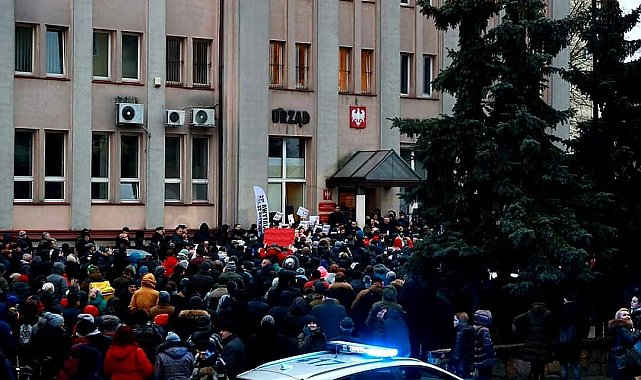 Polonya'nın Piotrkow Tyrbunalski kentinde binlerce kişi belediye binası önünde toplanarak artan enerji fiyatlarını protesto etti.
