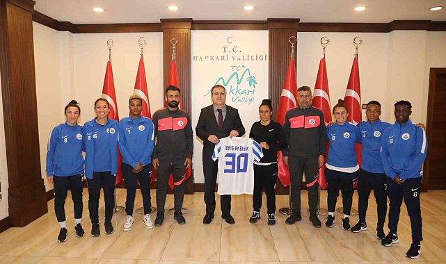 Hakkari Valisi ve Belediye Başkan Vekili İdris Akbıyık, Kadın Futbol Süper Ligi'nde mücadele eden Hakkarigücü Kadın Futbol Takımı sporcularını makamında kabul etti.Kadın Futbol Süper Ligi'ne 6 yıl önce yükselen ve başarılı bir performans sergileyen Hakkarigücü, şampiyonluğu hedefliyor. Aldıkları başarılı sonuçlarla ligde namağlup unvanını koruyan mavi beyazlı ekip, Vali İdris Akbıyık'ı makamında ziyaret ederek üzerinde İdris Akbıyık yazılı takım formasını hediye etti.Vali Akbıyık, takım başkanları ve oyuncuları makamında kabul ederek bir süre sohbet edip başarıların devamını diledi.